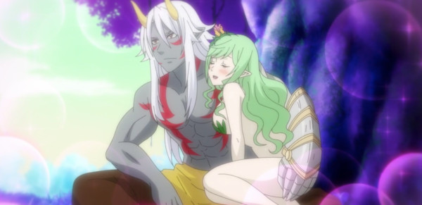Si le récit a mis un peu de temps à décoller, là, il passe la troisième vitesse. Le 37e jour, Gobu-Mi trouve dans la forêt une carbuncle, une sorte de fée blessée. Elle est traquée par des aventuriers qui veulent lui voler la pierre précieuse qui orne son front. Gobu-Rô la soigne (il a le pouvoir de guérison). La prénommée Litana raconte alors son histoire. Créature artificielle créée par le mage Velvet, elle est chargée de garder ses trésors depuis sa mort. Il détestait tellement les humains qu'elle implore les gobelins de l'aider, en échange, ils auront le magot. Alors pour la faire court, ce 37e jour est le jour le plus long ! Il finira par un banquet et plein de nouvelles aptitudes pour notre héros et son frère, soutien de toujours et compère de chasse, Gobu-Kichi, vexé de ne pas réussir à grimper, partira dans la forêt pour vaincre plein de grosses bêtes et ne reviendra qu'une fois upgradé en ogre. L'une de celles qu'il va tester ensuite dans une seconde partie de l'épisode, qui part un peu en classé X, n'est autre que la libido.
