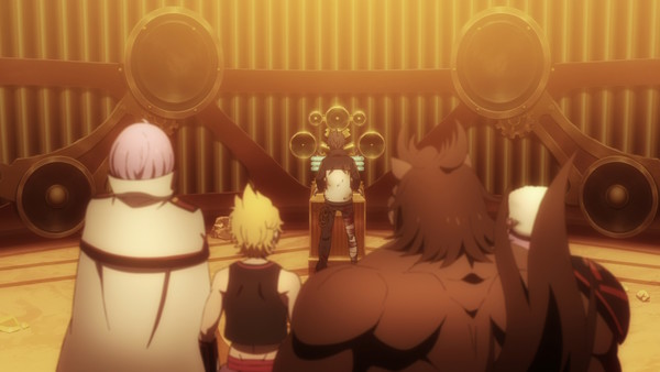 L'épisode est encore plus mou que le précédent c'est dommage ! Ils tergiversent pendant des plombes devant un micro à se décider qui va finir par prendre la parole alors qu'on sait d'office qui va s'y coller sans aucune surprise. La scène est assez longue et la prise de parole prend pas mal de temps de l'épisode aussi. Heureusement le discours est plutôt bien fichu, alors c'est que du blabla mais le seiyû est convaincant, le texte est bon, on décèle la faiblesse, mais aussi la fragilité et la détermination du personnage. Finalement encore dans un bon gros syndrome de l'imposteur alors qu'il a déjà vaincu des adversaires plutôt coriaces.