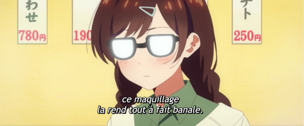 Bon le cadeau est donné, et même s'il fait un peu présent de vieux, les prunes salées ont l'air d'avoir plu à Mizuhara. Elle a compris le message et elle ne fait plus la tête. Quand Kazuya lui propose un truc mercredi soir, elle décline car elle va boire un verre avec des copines. Bien entendu on a droit à toute la conversation quelque peu creepy du jeune homme en voix off, bref il ne s'arrange pas, il reste un éternel obsédé. Mais surtout, il voulait mettre les choses au clair, et qu'elle sache bien qu'il ne s'est rien passé avec Ruka. Elle le croit, cela ne va rien changer, mais au moins les choses sont dites.