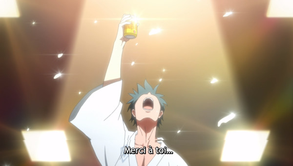 Les gars se retrouvent donc dans un endroit cosy et calme avec bains en plein air. Une fois le brainstorming achevé, les deux protagonistes se retrouvent dans le bain et on comprend pourquoi notre héros est traumatisé. Une fois les confidences passées, c'est l'heure de fêter les 20 ans du jeune homme qui prend alors la première cuite de sa vie. Ivre, il taille un costard à chacun de ses partenaires mettant en exergue le défaut qui le rend plus faibles en bad, tout en les remerciant pour leur aide dans le travail. Et il s'endort la bave au coin des lèvres, avant de connaître le lendemain sa première gueule de bois !