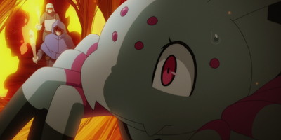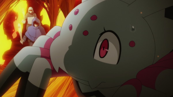 Elle n'a vraiment pas de chance. En plus d'être faible tout le monde la déteste. Il va falloir trimer sévère pour réussir à survivre dans cette grotte moisie ! L'épisode se permet des parenthèses sur la vie précédente de l'héroïne, on en apprend un peu plus sur cette lycéenne harcelée, en marge du groupe, qui aimait jouer aux jeux vidéo. Et du jeux vidéo il y en a un paquet dans l'épisode qui reproduit de l'affichage tête haute de statistiques, reprend l'esthétique 8-bit de vieux RPG pour illustrer certains plans, bref nous sommes en plein dedans et c'est pas prêt de s'arrêter. C'est dommage que ça ne soit pas le prétexte à une débauche d'animation et que même le duel final de l'épisode ne soit pas une occasion de faire péter le sakuga. Tant pis, y a Mushoku Tensei pour compenser ça cette saison.