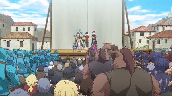 Et hop une nouvelle fille dans la besace ! Après Shin voilà que déboule l'araignée géante sous une forme plus attrayante. Elle reste terrifiante sous ses airs de demoiselle propre sur elle. Makoto fait la connaissance de Belen, nain ancien sauvé des griffes de sa nouvelle servante. Ce dernier souhaiterait s'installer dans la dimension où ils se trouvent avec sa communauté. Comme il y a largement de la place, pas besoin d'hésiter. Mais quand déboulent Homme-lézard et Alckey rapatriée par Mio et Tomoe, ses deux suivantes nouvellement renommées par Makoto, il se dit que quand même, ça fait beaucoup là. Après un discours de circonstance et un vote pour choisir comment les habitants s'adresseraient à lui (ils ont choisi “jeune maître”), notre paria reçoit les salutations de ses nouveaux « pensionnaires ».