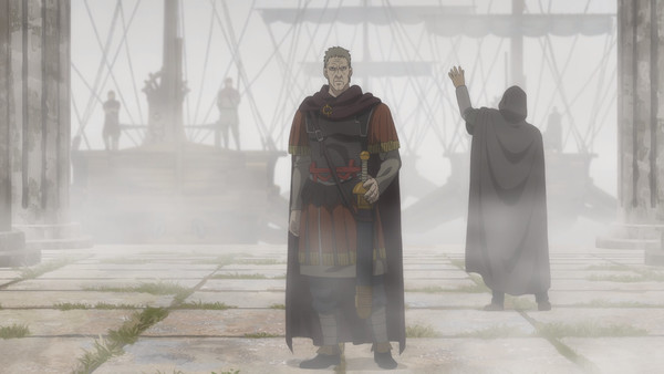 Le récit est tout aussi prenant dans ses enjeux politiques, voyant la confrontation entre différents leaders : l'inflexible général Gratianus face au virginal prince Canute. Thorfinn lui-même fait le jeu d'Askeladd et s'avère quasiment absent, bien qu'il se voie confier une mission de la plus haute importance. Plus que jamais, une partie d'échecs se met en place, l'épisode ne manquant pas de passer en revue chacune des pièces avant de lancer une nouvelle attaque…