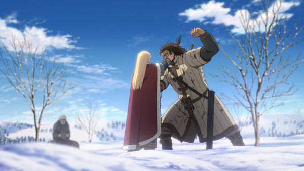 L'affiche était attendue, et le combat spectaculaire. Pourtant, à quelques centaines de mètres de là, c'est un autre combat qui retiendra toute notre attention : celui du prince Canute face à lui-même. Björn, dernier fidèle d'Askeladd, se bat comme un acharné face à ses poursuivants, au point d'en avoir perdu la raison. Face à ces futiles combats dont il est la récompense, Canute médite sur la bêtises des hommes, les choix qu'ils font au nom de leur prétendu “amour”. Parvenant enfin à faire le deuil de Ragnar, et à tuer l'enfant en lui, le prince saisit le rôle qu'il pourrait jouer pour étouffer la démence de ce monde.