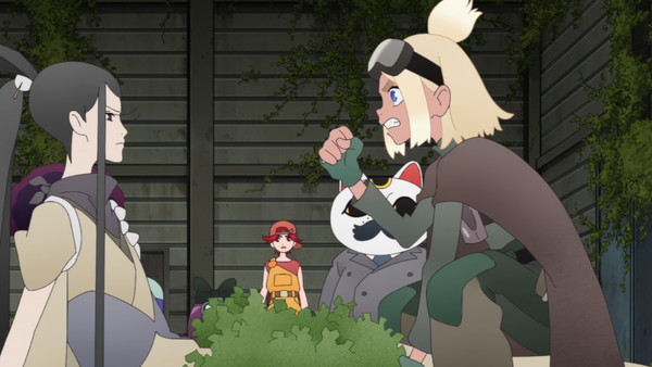 La semaine dernière, Finn occupait notre attention tout en restant en retrait. L'épisode de cette semaine le met cette fois sur le devant de la scène, et pas de n'importe quelle manière puisque les deux tiers sont consacrés à sa jeunesse dans les bas quartiers de la cité. Le prologue reprend d'abord le conte narré au début du premier épisode, dans une mise en scène cette fois stylisée à la manière d'un livre illustré pour enfants. C'est Finn qui en lit le contenu, une manière de rattacher le personnage à la mythologie de l'anime. On apprend ainsi que ses allergies au Deco sont liées au dysfonctionnement du système de traitement, lequel provoque également d'autres maladies plus importantes. Le postulat est ainsi propice à un constat très contemporain, selon lequel les individus connectés au Deco se révèlent bien plus concernés par le confort du Love et de leur simulacre (leur lentille permet de dissimuler l'accumulation de déchets à leur regard) que par des préoccupations sanitaires, ou plus simplement altruistes.