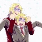 | 4.France/England (Hetalia) Long-time rival/pals France and England have simply loved to fight over the centuries. So when France, with an aura of doom and gloom hanging about him, unenthusiastically asks England to marry him, it's a little odd. England tries to laugh it off as a poorly-timed April Fools joke, but France begs England to save him (he's having political problems with the Suez Canal). England is stymied as France attempts to force him to sign a marriage certificate, but eventually the future United Kingdom fights back. In the end of the scene France forcibly drags England off for unknown purposes...although in the historical end, France joins the Commonwealth rather than united with England. |