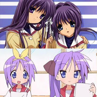 | 1 and 2. Kyou and Ryou Fujibayashi (Clannad) & Kagami and Tsukasa Hiiragi (Lucky Star) Which twins came first? Hard to say: the original Lucky Star manga launched in January 2004, and the first release of Clannad was later that year...but both were probably in development for a while before that, so perhaps only their creators know. Fans were a bit flummoxed by the charactesr' physical and personal similarities, especially given their close release dates. A sudden onslaught of purple-haired twins, if you will. The elder sisters, Kyou and Kagami, have slightly different hair styles, but are both primarily tsundere characters (although in Kagami's case that's partially an in-joke with series protagonist Konata). Ryou and Tsukasa, on the other hand, have very similar hairstyles, and both are sweet and earnest. |
