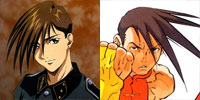 | 6. Trowa Barton (Gundam Wing) & Yang Lee (Street Fighter III) Okay, okay, Yang is a video game character, and his personality is nothing like Trowa's. The mech pilot is a calm, emotionless soldier (and former circus clown), while Yang and his brother Yun are passionate fighters...although Yang is a bit more even-tempered than his brother. But probably not Trowa-level calm. No, the main thing about Trowa and Yang is, of course, that hair. It's a pretty odd style— who, outside of a fashion shoot perhaps, would find bangs that stick out so far to be practical? Perhaps not by coincidence, Yun Lee also bears resemblance to a Gundam Wing character: Duo Maxwell. |