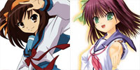 | 3. Haruhi Suzumiya (The Melancholy of Haruhi Suzumiya) & Yuri Nakamura (Angel Beats!) These two don't just have similar hair, similar stances, or similar leadership styles for their club's (the SOS Brigade and the SSS organization): they both have similar personalities. As the leader of the SOS Brigade, Haruhi is a forceful commandant who demands entertainment in some form or another at all times...preferably involving the supernatural. Yuri's goals are more definable, but no less esoteric: she wants to fight god alongside her friends. The primary difference is that Yuri is actually aware of the safety of those friends, whereas Haruhi will thoughtlessly drag her own club members into all sorts of inappropriate situations (although to be fair, she doesn't always know about the problems involved). |