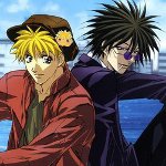 | 6. Train Heartnet, Sven Vollfield, and Eve (Black Cat) Easy-going ex-assassin Train Heartnet used to be taken care of by his shady overlords, the sinister organization known as Chronos. But after going rogue and partnering up with "Sweeper" (bounty hunter) Sven Vollfield and the mysterious young girl Eve, the trio winds up frequently broke. Sure, they catch bounties, but the damages they cause while on their adventures often cost as much or more than they earned. Their occasional companionship with thief-for-hire Rinslet Walker doesn't help, either, even as she encourages them to try and earn more. |