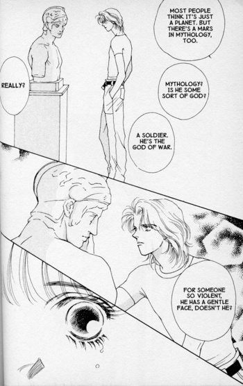 The cover copy of the Tokyopop edition calls Mars “one of Japan's most popular comics for teen girls ever,” and it's easy to see why. It's great romance, it's great drama, and, story aside, it's great-looking. Fuyumi Sōryō's art shows an old-school Twenty-Four Year Group influence in its delicate linework and carefully rendered figures. She has a gift for capturing expressions and body language. Shaggy-haired, long-limbed Rei is a very beautiful boy, while Kira's changing appearance telegraphs her development from a shy misanthrope into a brave, big-hearted aspiring artist. Setting the story at a school that doesn't require uniforms allows Soryo, a former fashion design student, to telegraph the changes in her characters’ inner lives with changes to their wardrobes and hairstyles.
