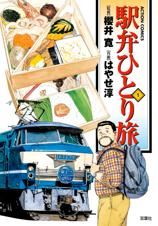 One of the many differences between Kodoku no Gourmet and Not Love (aside from art, writing style, protagonist, mood, and basically everything) is that Not Love is about real restaurants. Kodoku no Gourmet seems to be about made-up, composite places that are typical to certain neighborhoods, and sometimes the hero actually doesn't like the food or the service, but in Not Love the restaurants always get a positive review. The same mixture of manga and crosspromotion is at work in Ekiben Hitoritabi ("A Solitary Journey of Train Station Bento Boxes"), by Jun Hayase and Kan Sakurai, a manga about a guy who travels around Japan on the railroad doing nothing but looking at the scenery, spouting facts about Japanese railway history and eating bento box meals. That's right: a manga for Japanese railway otaku, about special foods that are ONLY available at specific railway stations in Japan. I know trains are popular in Japan, but this is for the diehard train otaku. If I had to hide a secret message inside a Japanese bookstore and I wanted to put it somewhere I didn't think anyone would ever look, I'd probably put it inside this manga. And yet, I'd be totally wrong: in Japan, it's up to 15 volumes.