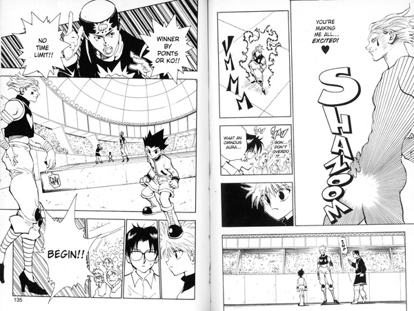 One of the problems with summarizing Hunter x Hunter is that it's like every shonen manga in one. There's training sequences. There's tournament battles. There's a crime-mystery story arc. There's a virtual-reality, RPG-style story arc. There's a Fight To Save The World From The Big Bad. It's as if whenever Togashi gets tired, he simply changes Hunter x Hunter into a different manga.