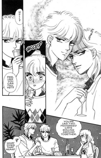 Although most Americans in 2013 will immediately think that Cipher is obsessed with the '80s, the truth is, Cipher is obsessed with America. No Japan-loving weeaboo has ever geeked out about Japanese culture more than Minako Narita geeks out about America in Cipher. The series ran in LaLa magazine from 1985 to 1990, so all the music and fashion she writes about is simply current pop culture for the time. And although it's glowingly idealized, Narita's depiction of America is surprisingly realistic for a manga; her "research trips" obviously paid off. I can almost imagine Narita writing Cipher, in her room surrounded by Western toys and music, looking at her photos of New York, eating an American-style breakfast of eggs and toast and orange juice (seriously! She says so in her author's notes!), thinking "What would an American do here? What would an American think? What would be in a typical American street/restaurant/apartment/high school? I HAVE TO KNOW!!!" A large percentage of Cipher is simply about creating the perfect vicarious "American teenager" experience, something which apparently clicked with shojo readers from 1985 to 1990; the series was adapted into an anime, and an 'image album' with, fittingly, Western pop music.