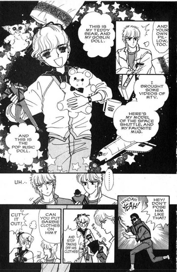 It's '80s week at House of 1000 Manga! Actually, it's always sort of '80s week here, but Cipher is very probably The Most '80s Manga Ever. This is a manga with references to Hall & Oates, Culture Club, Billy Joel, Prince, Madonna, Phil Collins and Wham!. The characters own Gremlins dolls, early Mac computers and Michael Jackson figures. They talk about Ronald Reagan and the Space Shuttle. Fashion-wise, there is feathered hair, muscle Ts and pseudo-military fashions they could have worn on the set on Janet Jackson's Rhythm Nation video. The only thing that could make it more '80s would be a fight scene involving Cabbage Patch Dolls.