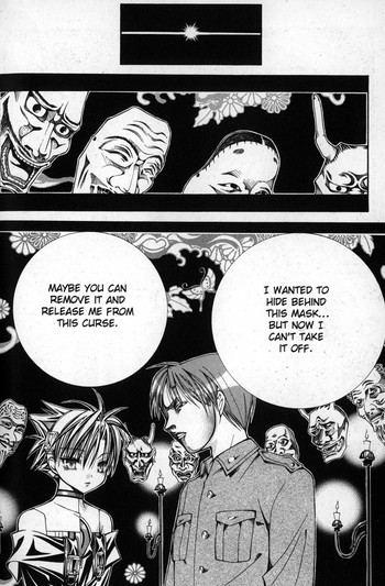 I said this was shojo horror, but that might not be entirely true. Yumekui Kenbun originally ran in Square Enix's shojo magazine Stencil, but after that magazine collapsed, it moved to a new magazine, G-Fantasy, which is technically shonen. However, as Melinda Beasi has explained, G-Fantasy (better known for popular titles such as Black Butler, Pandora Hearts and Zombie-Loan) is a sort of hybrid/androgynous manga magazine, which mixes traditionally shonen stuff (action, demons, craziness, pretty girls) with traditionally shojo stuff (pretty boys, suggestive scenes between two or more pretty boys). Call it "girly shonen" if you want, like one reviewer did, or say that these definitions don't mean much; to me, Yumekui Kenbun feels shojo, if only because of the character designs, and that general (un-shonen) feeling of dark beauty.