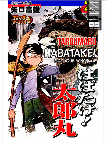 If this sounds interesting, thank Shaenon Garrity; she's the one who introduced me to Flap Your Wings, Taroumaru!, drawn by Takao Yaguchi, a mangaka famous in Japan for his manga about nature and fishing. (His best-known fishing series, Tsurikichi Sampei, ran in Shonen Sunday from 1973 to 1983.) He's also written educational manga about the environment, and his comics combine super-detailed, realistic drawings of plants and animals with an earnest, hard-working shonen manga spirit.