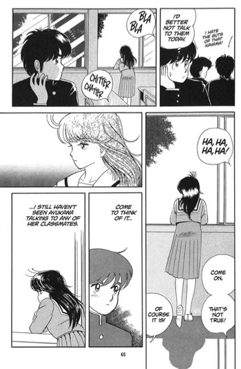 Kyôsuke goes to his new class, meets his new classmates…hey! It's that girl with the hat! Her name is Madoka Ayukawa. But he's surprised to discover that, in school, Madoka's attitude is completely different: no longer the nice girl who talked to him on the stairs, she's standoffish and cool, a tough girl who smokes in the girls' room with the other tough girls and skips class. Later we discover she also rides a motorcycle, plays the guitar, and occasionally uses guitar picks as weapons to beat up creeps. Their second meeting does not go well: Kyôsuke puts out her cigarette with his secret ESP powers and scolds her that smoking is bad for her health. She slaps him in the face and calls him "kid", leaving him speechless.