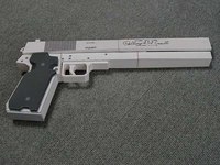 Hellsing leading vampire Alucard has two primary weapons: the Jackal and the Joshua. This is a papercraft replica of the Joshua, complete with the text that reads "Hellsing Arms 454 Casull". Why spend a hundred fifty on a metal replica when mere paper will do the trick? (Via Bongo Papercraft)