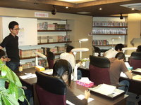 A new manga café called Manga Kūkan ("manga space") opened this past May in the Osu shopping area of Nagoya City in central Japan. Unlike other manga cafés, however, this shop is geared specifically towards would-be and young manga creators. 51-year-old shop owner Yasuhiro Naitō set up the café with equipment which budding manga creators can use. (Naitō is not the same person as Trigun manga creator Yasuhiro Nightow, although the two share the same name in kanji.)