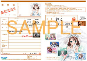 The Animate online store in Japan is currently offering a set of illustrated Baka and Test - Summon the Beasts sheets, featuring the (male) character Hideyoshi Kinoshita in a wedding dress. The Hideyoshi wa Ore no Yome! Kisaragi Grand Park Tokusei Konintodoke Set also includes an illustrated mock-up of a marriage certificate and a mailaway set of personalized cards certifying that "Hideyoshi is my Wife" ("Hideyoshi wa Ore no Yome"). Anime character designer Miwa Ōshima personally drew new artwork for the set.