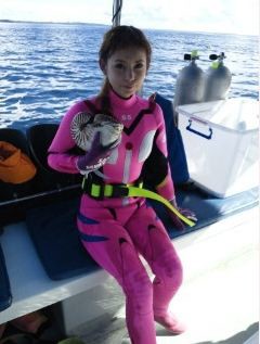 Singer, voice actress, and manga creator Shōko Nakagawa ("Shoko-tan") modeled an Evangelion-themed wetsuit on the television program Tobidase! Kagaku-kun. The functional wetsuit was designed to mimic the plugsuit worn by the character Mari Illustrious Makinami in the recent anime film Evangelion: 2.0 You Can [Not] Advance (Evangelion Shin Gekijōban: Ha). Nakagawa also wore Makinami's hairstyle, glasses, and headband. Nakagawa posted additional images on her blog during the trip for the program's filming.