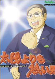 The manga was published by Nidec; Nagamori told the newspaper that he hopes that the story of his transition from impoverished farmer's son to founder and chief executive of a successful company will inspire young people. The title proclaims in Japanese that Nagamori is "the man who is hotter than even the sun" (Taiyō yori mo Atsui Otoko).