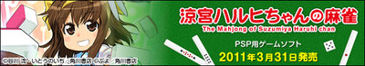 On Wednesday, the Japanese media conglomerate Kadokawa updated its official website for Suzumiya Haruhi-chan no Mahjong (The Mahjong of Suzumiya Haruhi-chan), an upcoming videogame for the PSP console with the characters of The Melancholy of Suzumiya Haruhi-chan playing the tile gambling game mahjong. The website update includes the opening sequence for the game, which can be seen here.