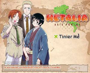 On Friday, the online multiplayer social networking game TinierMe launched a new collaborative campaign with North American anime distributor Funimation to advertise the anime series Hetalia - Axis Powers. As part of the collaboration, users can spend "G-Coins" to play a virtual gashapon (capsule toy dispenser) machine which gives them in-game items that they can place on their avatars. G-Coins can either be earned by completing sponsor's offers or purchased with money.
