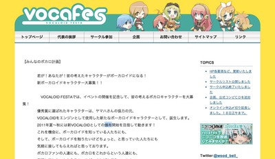 The Vocaloid Festa dōjin (self-publishing) event announced that it is co-hosting a contest to create Yamaha Corporation's next Vocaloid singer character this year. Yamaha developed the Vocaloid software engine that can synthesize vocal songs without a human singer; other companies have used versions of this engine to release song-making tools, each personified by a character that they created. The best known of these characters is Crypton Future Media's Hatsune Miku.