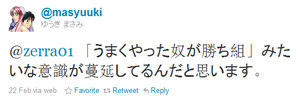 Unbalance Tokyo manga creator Minako Uchida added that fans may enjoy the instant gratification of downloads "without noticing that their repeated plunder is leaving the soil barren." Patlabor/Birdy the Mighty creator Masami Yuuki suggested that the rationalization that "the best creators will naturally survive" has become widespread.