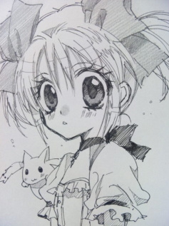 Manga creator Arina Tanemura (Full Moon wo Sagashite, Kamikaze Kaitou Jeanne) posted hand-drawn fan art of Madoka, the female protagonist from the television anime Puella Magi Madoka Magica, on her Twiter account on Saturday. Tanemura drew the art after seeing the anime for the first time. The image also includes the mascot character Kyūbei.
