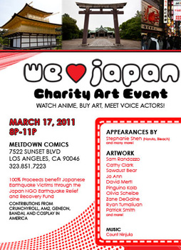 Voice actress and dubbing scriptwriter Stephanie Sheh (Naruto's Hinata Hyuuga, The Melancholy of Haruhi Suzumiya's Mikuru Asahina) announced that she and comic book artist Pinguino Kolb have launched a charity art auction to raise funds for the March 11 earthquake and tsunami in Japan. The event will take place at Meltdown Comics in Los Angeles on Thursday, March 17 from 8:00 to 11:00 p.m. The site's call for art indicates that additional events will be held if the organizers receive enough art donations.