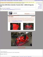 American television channel MTV's Geek News blog reports that a life-size display motorcycle based on the one driven by Kaneda in Katsuhiro Ōtomo's Akira anime film was put on sale on the Los Angeles site of the classifieds site Craigslist. The April 4 ad is now expired, although search engine Google provides the posted image (below, left) as a cached version of the page, confirming the bike's asking price of US$4,000.
