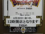 Busou Shōten, a store in Tokyo's Akihabara otaku shopping district that specializes in fictional weapons, announced that it will open late at noon on Friday "because of the final Madoka Magica episode." The sign on the store front (pictured at right) demonstrates the store management's enthusiasm for Madoka Magica.