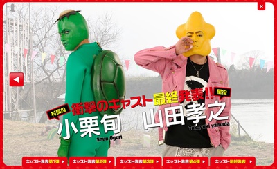 The rest of the cast includes Kento Hayashi as Riku, Mirei Kiritani as Nino, Nana Katase as Maria, Yu Shirota as Sister, Natsumi Abe as P-ko, Tōru Tezuka as Shiro, Norihisa Hiranuma as Billy, Kurume Arisaka as Jacqueline, Eri Tokunaga as Stella, and Tarō Suruga as the Last Samurai.