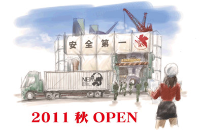 The project was originally supposed to open on March 12, but it was postponed after the Great Eastern Japan Earthquake (Higashi Nihon Daishinsai) disaster of March 11. It is opening during the July 9-10 weekend in a revised "Electricity-Conservation Promotion Ver." in light of Japan's current power-saving efforts. The event will screen an original Evangelion short starring the character Misato in the former school's gymnasium.