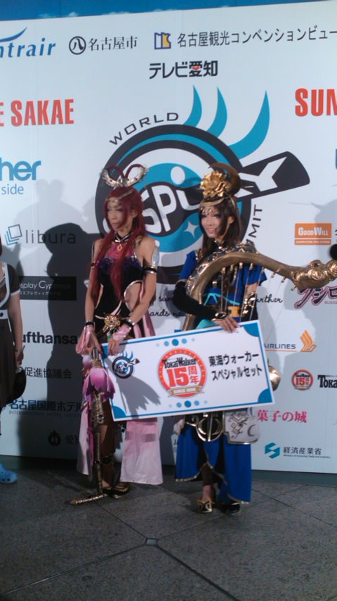 Italy's Daniela Maiorana and Marika Roncon dressed as Chocolat Meilleur and Vanilla Mieux from Sugar Sugar Rune and won the Bushiroad Prize. China's Deng Ya Qian and Zheng Jia Hong won third place (Tokai Walker Prize) with their Dynasty Warriors 7 costumes as Diao Chan and Cai Wenji.