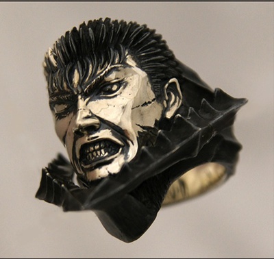 Berserk Manga Inspires Silver Ring with Guts' Head
