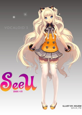 The Korean maker SBS Artech revealed the design for the new Korean Vocaloid character "SeeU" on Tuesday (pictured at right). In June, SBS Artech showcased a song by a synthesized Vocaloid voice that is based off the voice of up-and-coming Korean idol singer Kim Tahi.