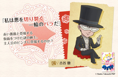 The game publisher Level-5 announced at its Level-5 Vision press conference on Saturday that Sailor Moon's Tuxedo Mask (Tuxedo Kamen) and Glass Mask (Glass no Kamen) manga character Masumi Hayami will join the growing roster of tie-in characters in Level 5's Girls RPG Cinderelife game. Tuxedo Mask's original voice actor Tohru Furuya will reprise his role, while Masumi Hayami will be played by his voice actor in the 2005 television series, Toshiyuki Morikawa.