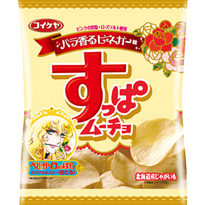 Frente's snack maker Koike-ya announced on Friday that it will begin selling rose-scented vinegar-flavored potato chips — inspired by the classic shōjo manga Rose of Versailles — throughout Japan on November 7. Since 1993, Koike-ya has been selling other flavors of Suppa Mūcho Chips — a Japanese/Spanish/English loanword combination that literally means "Very Sour Chips." The company notes that the brand is overwhelmingly more popular among females than males.