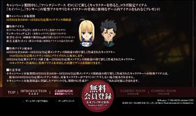Gamepot is offering other Fate/Zero items to players, including a full ensemble for a head-to-toes Saber or Lancer makeover to newly registered player who visit the Game Watch site.