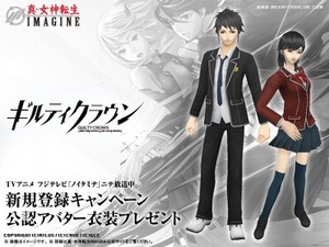 A crossover project between Cave's massively multi-player online game Shin Megami Tensei Imagine and the ongoing television anime Guilty Crown launched on Tuesday. As part of the campaign, newly created characters in Shin Megami Tensei Imagine can receive official Guilty Crown uniforms for the avatars.