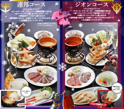 The Akihabara Gundam Café & Bar in Tokyo is featuring a special menu set for for the winter season. The "Drive Away Winter Cold! Clash Federation vs. Zeon Limited Reservation Party Course Menu" features both Federation- and Zeon-themed menus. The menus are available through reservation only.