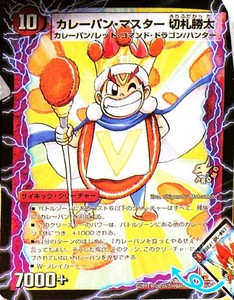 The January issue of Shogakukan's Coro Coro Comics will bundle a curry-scented Duel Masters trading card when the magazine goes on sale on December 15. The "Curry Pan Master Kirifuda Katta" (Curry Bread Master Trump Card Katta) card will be a psychic creature. The card will be a part of the fire civilization within the trading card game. The card will be bundled with a metal Duel Masters card deck case.
