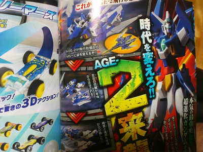 The January issue of Shogakukan's Monthly CoroCoro Comic magazine is confirming on Thursday that AGE-2, the second generation mobile suit in the Mobile Suit Gundam AGE television anime series, can transfom into flight mode. Bandai and the official Twitter account for the anime had already revealed the mobile suit mode of the unit.