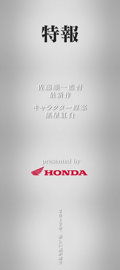 Tokyo MX's airing of the final Tamayura - Hitotose anime episode ended on Friday with a teaser video for the newest work from director Junichi Satō (Tamayura, Umi Monogatari ~Anata ga Ite Kureta Koto~, Aria). Sato is collaborating with original character designer Kouhaku Kuroboshi (Allison & Lillia, Kino's Journey, Sky Girls) and the car maker Honda. The teaser did not specify which medium the project will be in.