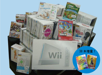 Enterking is also offering the "Wii Complete Lucky Bag's Revenge." Last year, the store chain offered the complete hardware and software collection for the Nintendo Wii console — including all 408 different software titles released in Japan — for 1,000,000 yen (US$13,000). This year, the Wii Complete Lucky Bag will have 38 more titles but cost 10,000 yen (US$130) less at 990,000 yen (US$12,870).