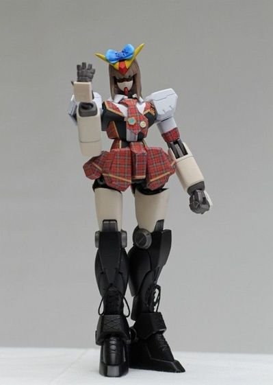 Nevertheless, the team members took heart and encouragement from all the people around the world who donated and volunteered, including AKB48. The team decided to take 12 1/144 Nobel Gundam models to recreate the "Iiwake Maybe" CD. To give each figure an individual look, the team modified the models' exteriors and built the ties, ribbons, shoe laces, and other accessories from scratch.